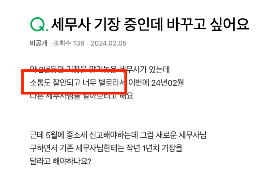 이처럼 대표님께 원활한 소통을 진행해 드리는 세무사에게 맡기길 추천드립니다.